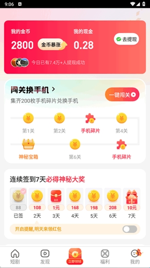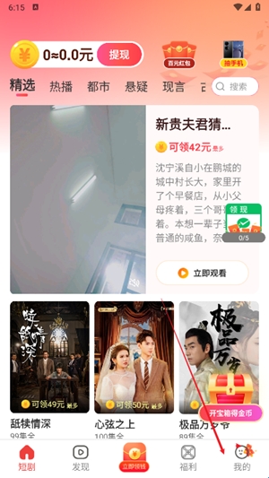 红包奖励机制:每看完一集、完成任务、邀请好友,都有机会触发现金红包,真实到账,随时提现。