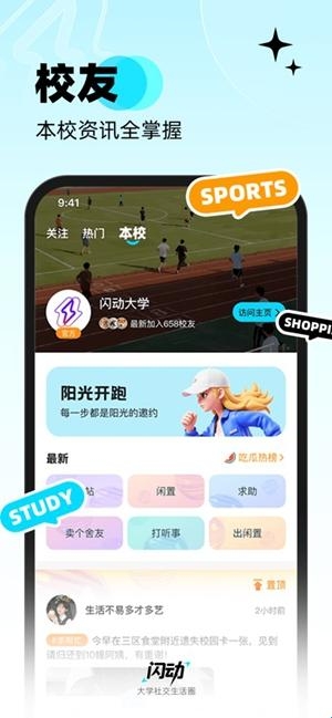实时动态分享:支持文字、图片和视频多种形式,随时随地记录并发布你的校园高光时刻,让精彩生活被看见。