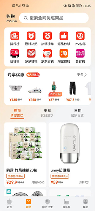 不想出门购物?这里为你精选大牌正品商品,搭配专属优惠券,更有限时补贴、爆品秒杀、9.9元包邮等超值活动,省钱又省力。