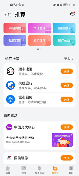 在“服务号”板块,汇聚众多官方及优质商家公众号,点击即可关注,第一时间获取最新资讯与优惠信息。