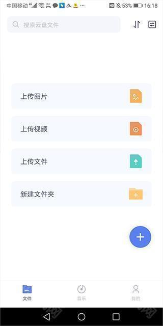 打开应用后,系统会自动按文件类型(如图片、文档、视频等)分类展示本地内容,只需轻点即可将所需文件一键上传至云盘,操作简单直观。