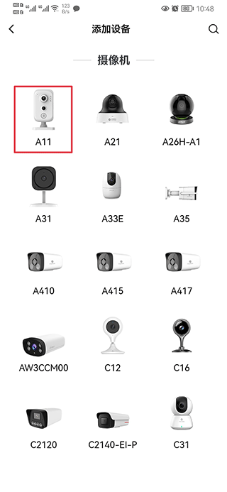 二、进入设备选择页面,点击“机构”,然后选择您要添加的具体设备型号,例如A11。