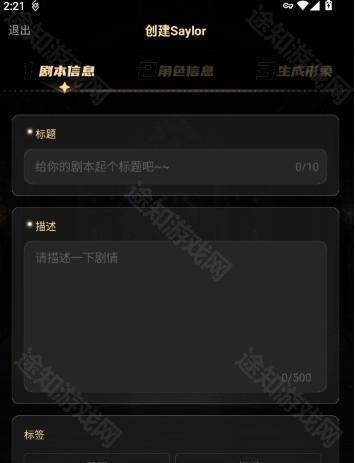 2.在创建界面,首先输入剧本标题、描述和标签,APP会根据关键词自动生成剧本信息