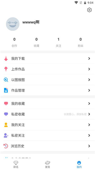 7、进入“我的”页面,可查看个人收藏、粉丝动态、下载记录及上传内容等信息;
