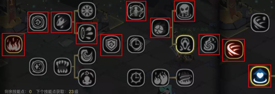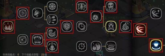 火星、魔力增幅、冰弹、极寒冰弹、魔法盾、神之庇护、灾祸、回生祭品、水元素、剑盾三连斩、强化体质。