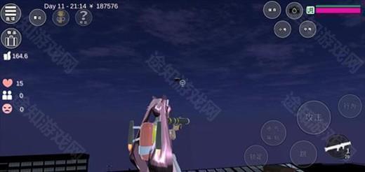 将时间调至晚上21点,前往咖啡馆附近,点击“飞行”升空至与楼层齐平的高度,环顾四周寻找UFO。使用武器攻击即可,其攻击模式固定,躲避难度较低。