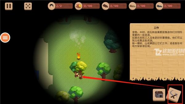 接着点击小火苗图标,启动文明的第一步——召唤第一批居民,开启你的建设时代。
