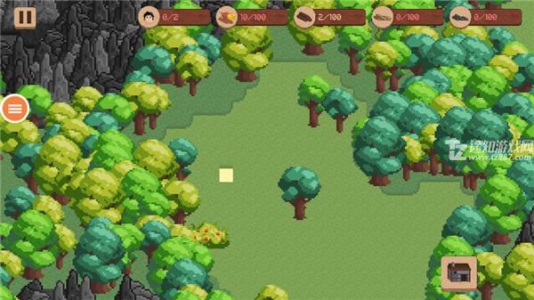 随后使用小镰刀工具开始砍伐树木,获取基础资源,为建造打下坚实基础。