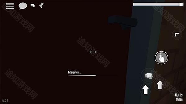 5、靠近建筑物,会出现图示按钮,长按可以开门。