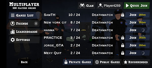 更令人兴奋的是,本作支持多人联机对战,你可以与好友或其他玩家组队协作,共同制定战术、执行任务。无论是默契配合的警匪对抗,还是紧张刺激的团队火拼,多人模式都比单人玩法更具策略性和娱乐性。现在就来免费下载,开启你的枪战冒险吧!