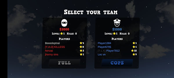 3、成功进入房间后,根据个人喜好选择加入警察或强盗阵营。