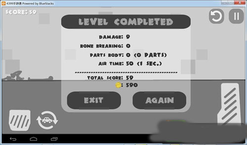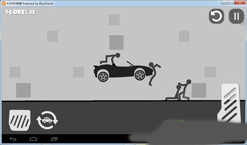 2、持续活用三大操作按钮:左侧控制减速或倒车,右侧长条用于加速,汽车图标按钮实现空中重置。通过反复操作制造连续撞击,最大化火柴人受伤程度,从而获得更高分数。