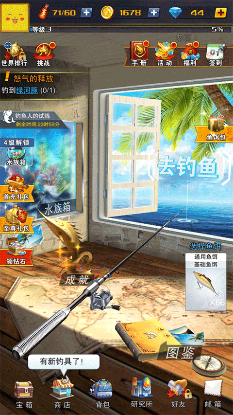 2、装备系统 竿钩线漂饵,钓鱼必备装备和消耗品,线组搭配、饵料调配、装备升级,真实性、策略性、成长性兼得。