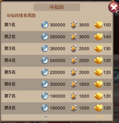 斗仙台是前期获取元宝的核心途径,想要最大化收益,必须力争排行榜前列。以下是冲榜关键策略: