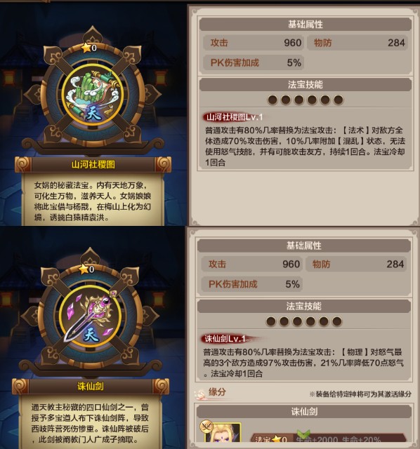 若能获得【山河社稷图】或【诛仙剑】等黄色法宝则更为理想,这类顶级输出法宝堪称土豪标配。