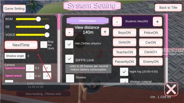 2、在菜单中选择【系统设置】,进入后找到【下一个时间】选项,点击即可切换游戏内的时间,方便体验不同时间段的校园活动。