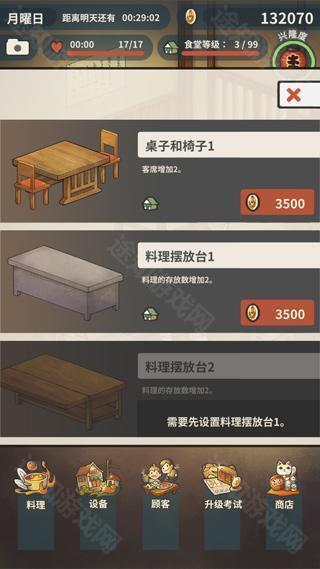 5、然后就是装扮,对店内进行装扮会提高玩家的收入并且增加各类属性,例如增加顾客人数,增加收益等等哦,玩家就是赚钱花钱再赚更多的钱,往复不断,以上就是众多回忆的食堂故事官方版的玩法了。