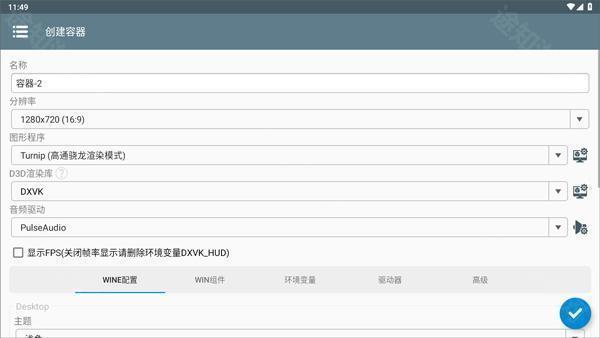 2、根据设备性能选择合适的屏幕分辨率,并设置显存大小(低配手机建议调低显存和分辨率以确保流畅运行)。
