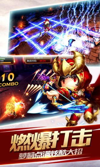 1、超燃炫彩的画面表现,呈现震撼的战斗特效,众多身怀绝技的英雄等你招募并肩作战;