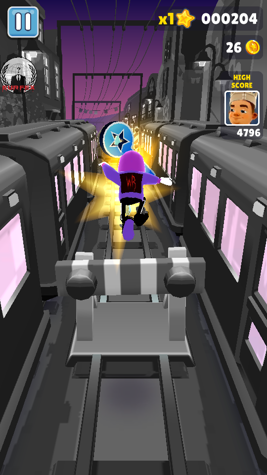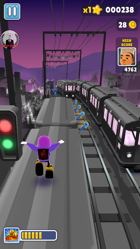地铁跑酷小雾神版本是一款玩家自制改版游戏,整体采用黑灰色调,主角杰克变为黑紫色,金币替换为钥匙,带来全新视觉与玩法体验。玩家依旧扮演跑酷高手,在地铁、街道、隧道等多样场景中疾驰闯关。