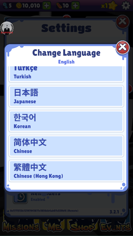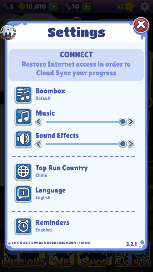 进入地铁跑酷小雾神定制版本游戏后,点击右上角的【设置】图标