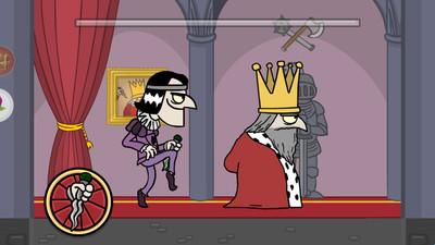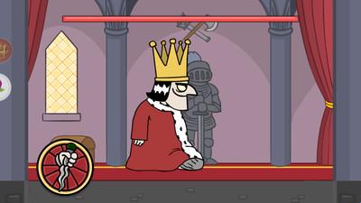 第二关,先点击左侧按钮使国王下降,再迅速靠近并完成刺杀。