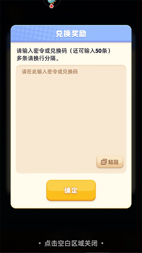 将获得的兑换码粘贴至输入框,确认后即可领取对应奖励。
