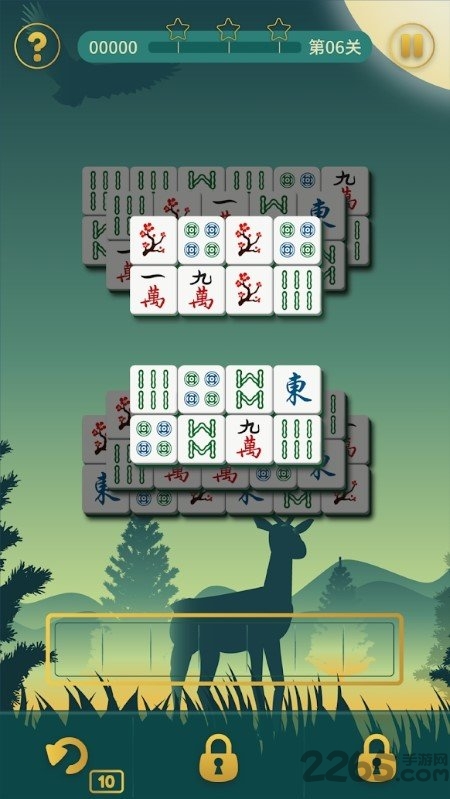 初始状态下,屏幕下方会显示一个可容纳7颗麻将的收集框,用于暂存你点击选中的麻将牌。