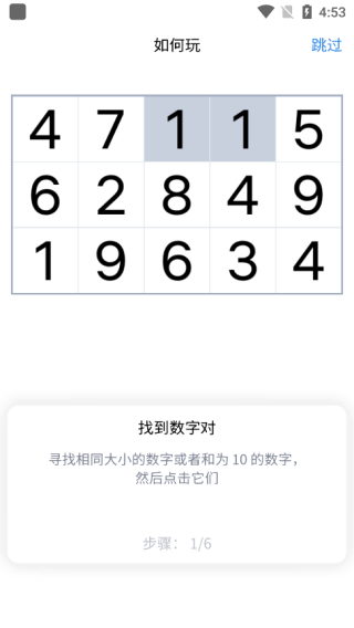 1、寻找可以消除的数字对——包括相同的数字,或相加等于10的两个数字。点击它们进行消除,但需满足相邻、无障碍物的斜线连接,或处于当前行/列首尾位置等特定条件。
