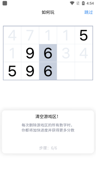 3、成功清除所有数字即可通关并进入下一关;若无法继续操作且棋盘未清空,则判定为失败,系统将根据你的表现计算最终得分。