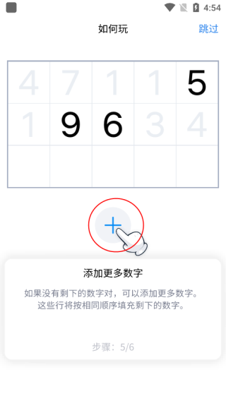 2、当棋盘上暂时没有可消除的组合时,点击右下角的“+”按钮,系统会自动补充新的一行数字,为你创造新的消除机会。