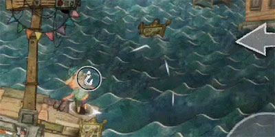 2、木筏四周漂浮着各种垃圾,你需要站在船头,瞄准目标后抛出钩子,将垃圾从水中拉回船上。