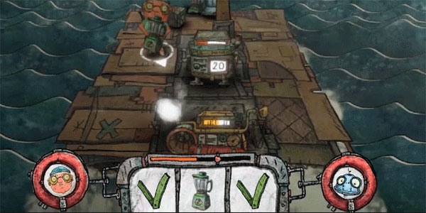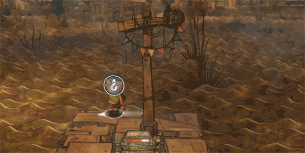 1、游戏开始会播放一段剧情动画,结束后你将出现在一艘破旧的小木筏上。首要任务是收集周围漂浮的垃圾,并利用这些材料修理木筏。