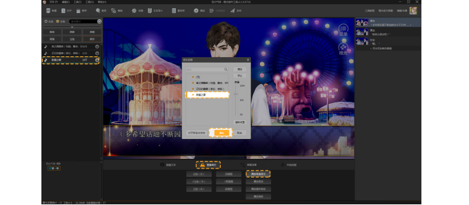 在素材区,点击立绘按钮,将人物立绘拖拽到效果画面中。