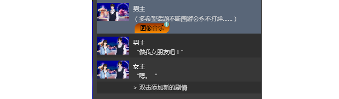 (2)需要的素材:男主和女主的人物立绘;街道和公园的背景图;轻松的背景音乐。